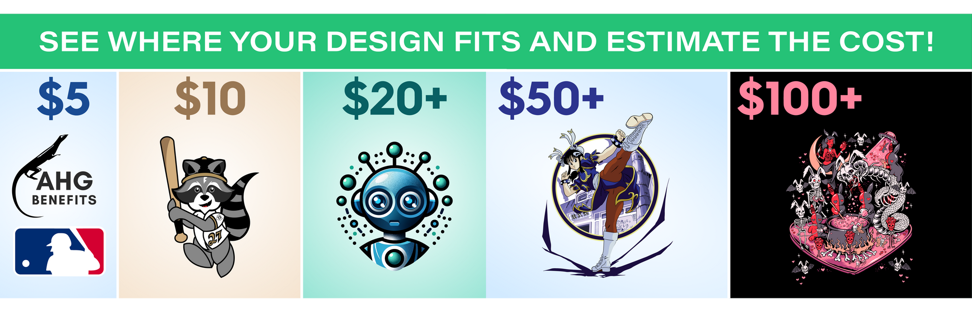 simple text, or silhouettes with minimal curves. - Medium Files (Typically starts at $20 - 50)Examples: Multiple elements, 3–5 colors, moderate detail, or slightly blurred originals that require detailed path creation.